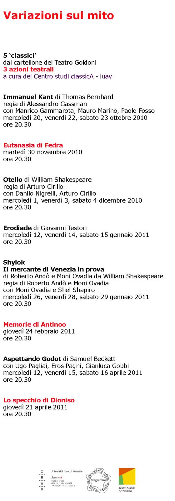 - novembre 2010 - aprile 2011Teatro Goldoni - VeneziaVariazioni sul Mito 2010/11